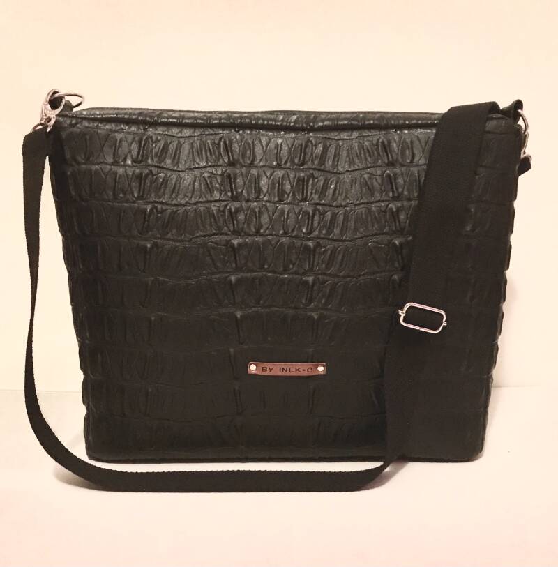 cross body model met brede bodem, ritsvakje voor en lang hengsel